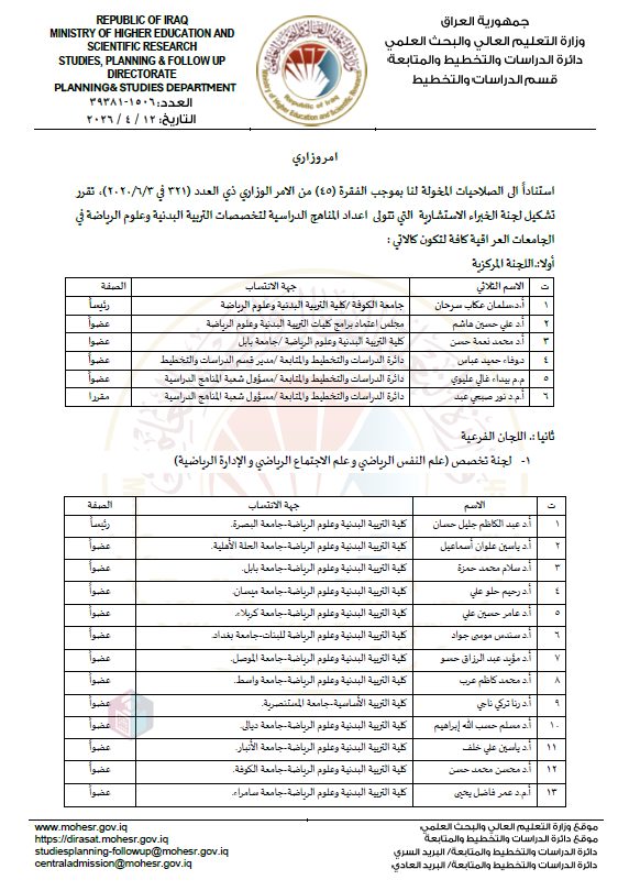جامعة الحمدانية / كلية التربية البدنية وعلوم الرياضة