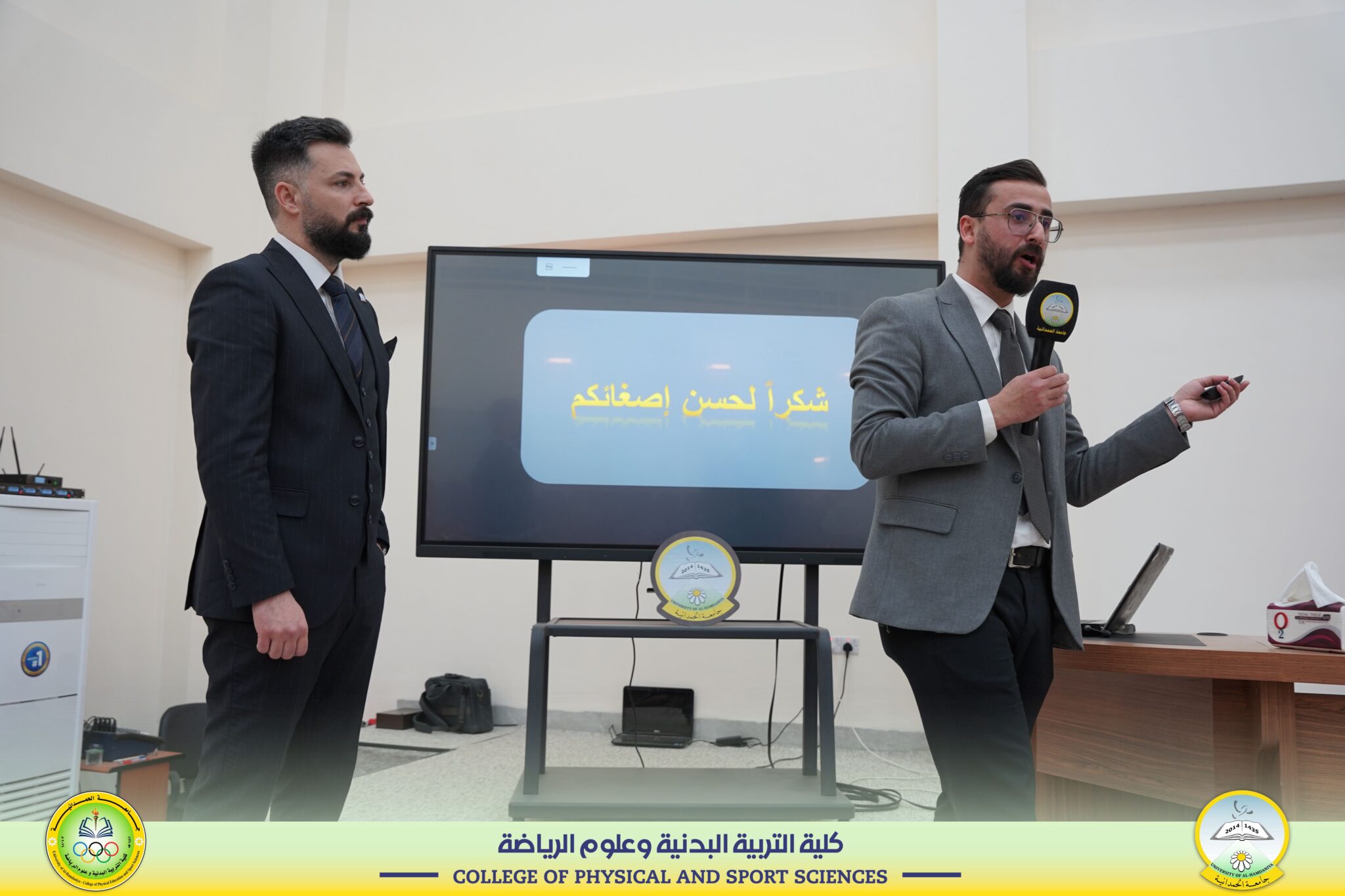 في ختام فعاليات اليوم الثاني من المؤتمر العلمي السنوي الثاني، جرت مناقشة البحوث العلمية المقدَّمة من قبل الباحثين المشاركين، وذلك ضمن جلسات علمية متخصصة اتسمت بالطرح المنهجي والنقاش الأكاديمي الرصين. وقد تناولت هذه البحوث موضوعات متعددة في مجالات علوم الرياضة والتربية البدنية، حيث خضعت للتقييم والتحليل من قبل لجان علمية مختصة، بما يسهم في تعزيز جودة المخرجات البحثية وتبادل الخبرات العلمية بين المشاركين.